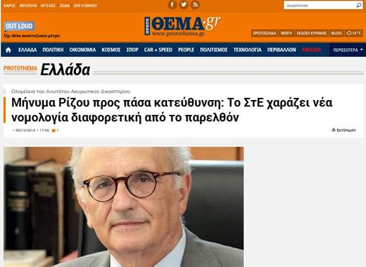 Σ. Ρίζος:« Το Συμβούλιο της Επικρατείας μεταξύ του συνταγματικού προτύπου του Κοινωνικού Κράτους και της πολιτικής ενστάσεως «Ουκ αν λάβοις παρά του μη έχοντος», ΘΠΔΔ 4/2015 σ. 289-293.